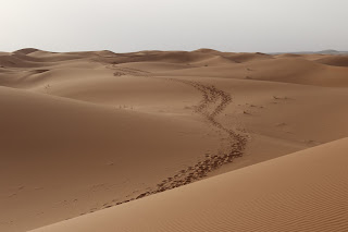 ...camel with no name...actually, mine was called Mick. Away we go, winding our way through 8km of the famous Erg Chebbi Dunes of the Sahara Desert, posteriors positioned uncomfortably on the dromedary's hump.